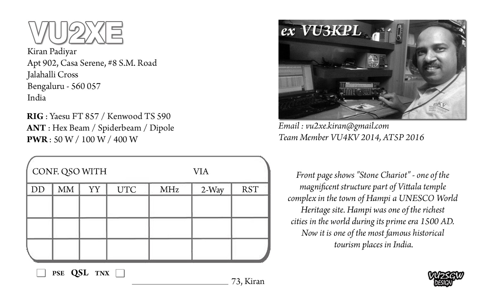 Designed QSL Card For VU2XE :